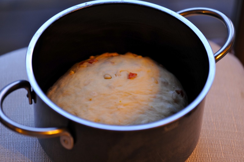 Pozostaw na 1 godzinę w ciepłym miejscu, aby ciasto wypełniło wybraną formę po brzegi.