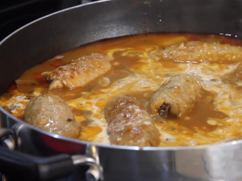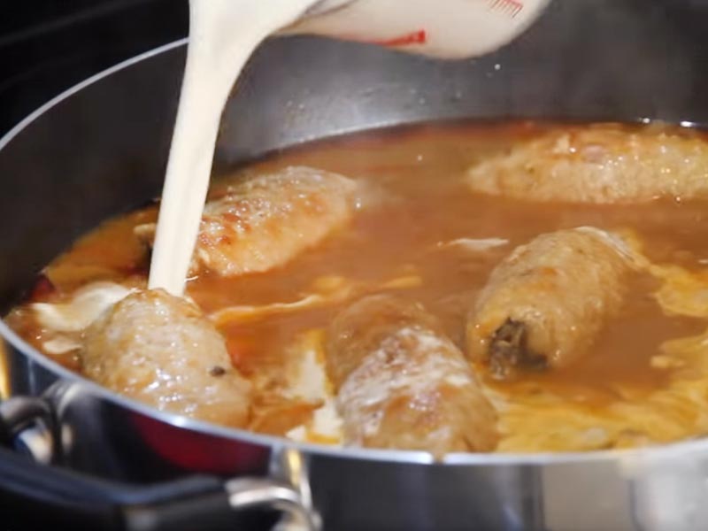 Patelnia powinna całkowicie przykryć roladki. Pozwól im się dusić przez 40 minut na małym ogniu. Danie jest gotowe, gdy timer się skończy. Można je podawać z ziemniakami lub boczną sałatką.