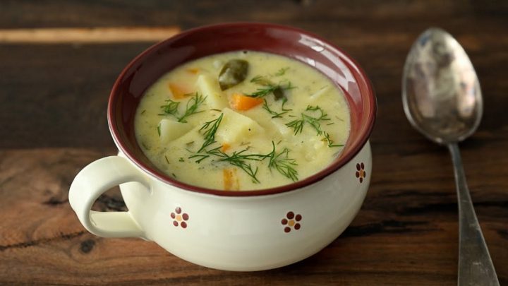 Do gotującej się zupy dodaj śmietanę i mieszaj. W osobnej misce połącz 100 ml bulionu z mąką i wlej do zupy. Ziemniaki wzbogać 2-3 łyżkami ogórka kiszonego, następnie dopraw do smaku. Dodanie mąki wcześniej zapobiegnie powstawaniu grudek, a im więcej dodasz mąki, tym zupa będzie gęstsza.